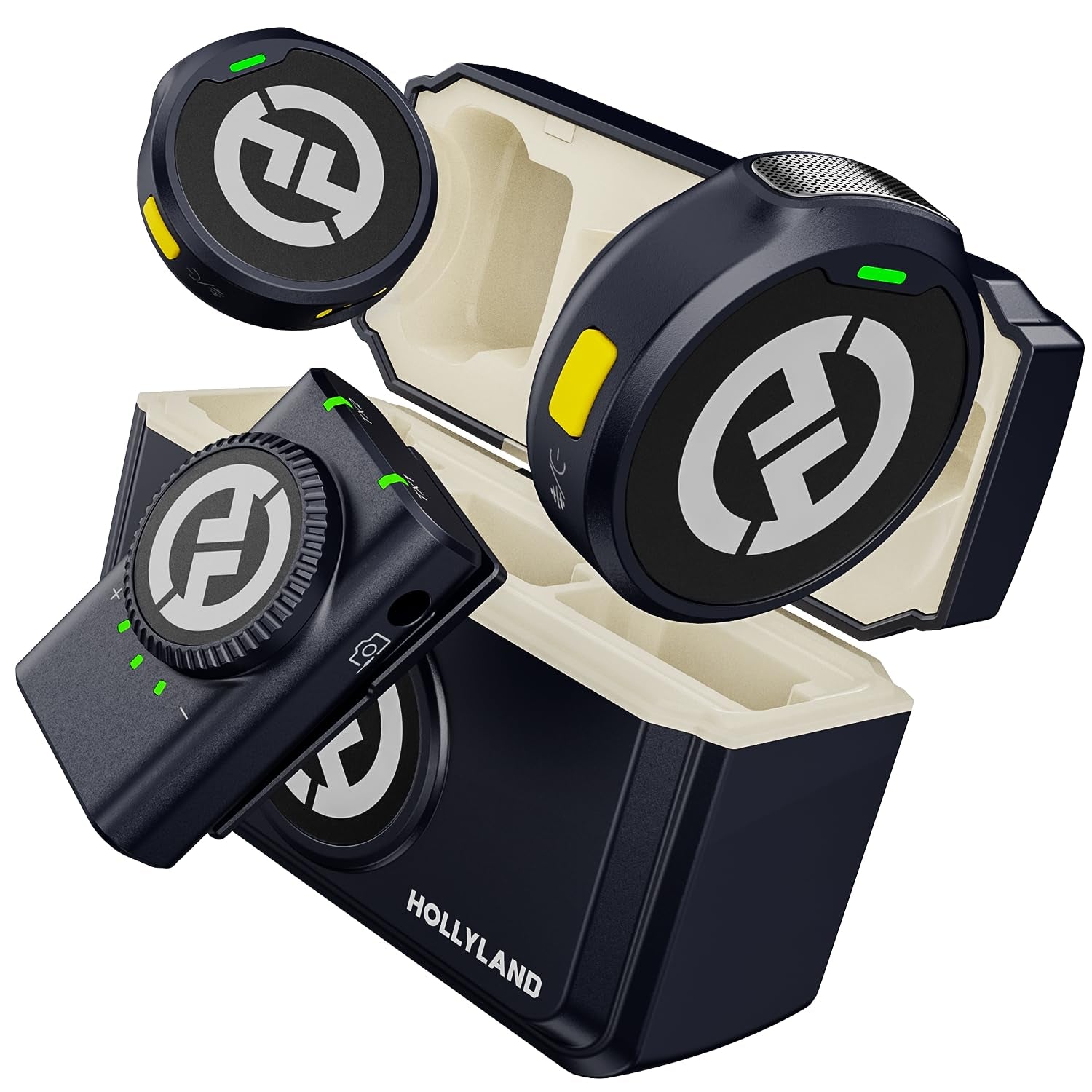 - [Smart Control of Noise Cancellation] LARK M2 supports one-click on the yellow button to turn on/off the noise cancellation on the transmitter. On the receiver of the camera version, the indicator lights at the top of the RX will stay green when noise cancellation is on. Enhanced firmware and audio algorithms ensure crystal-clear, rich, and undistorted human voices, even in noisy environments.
