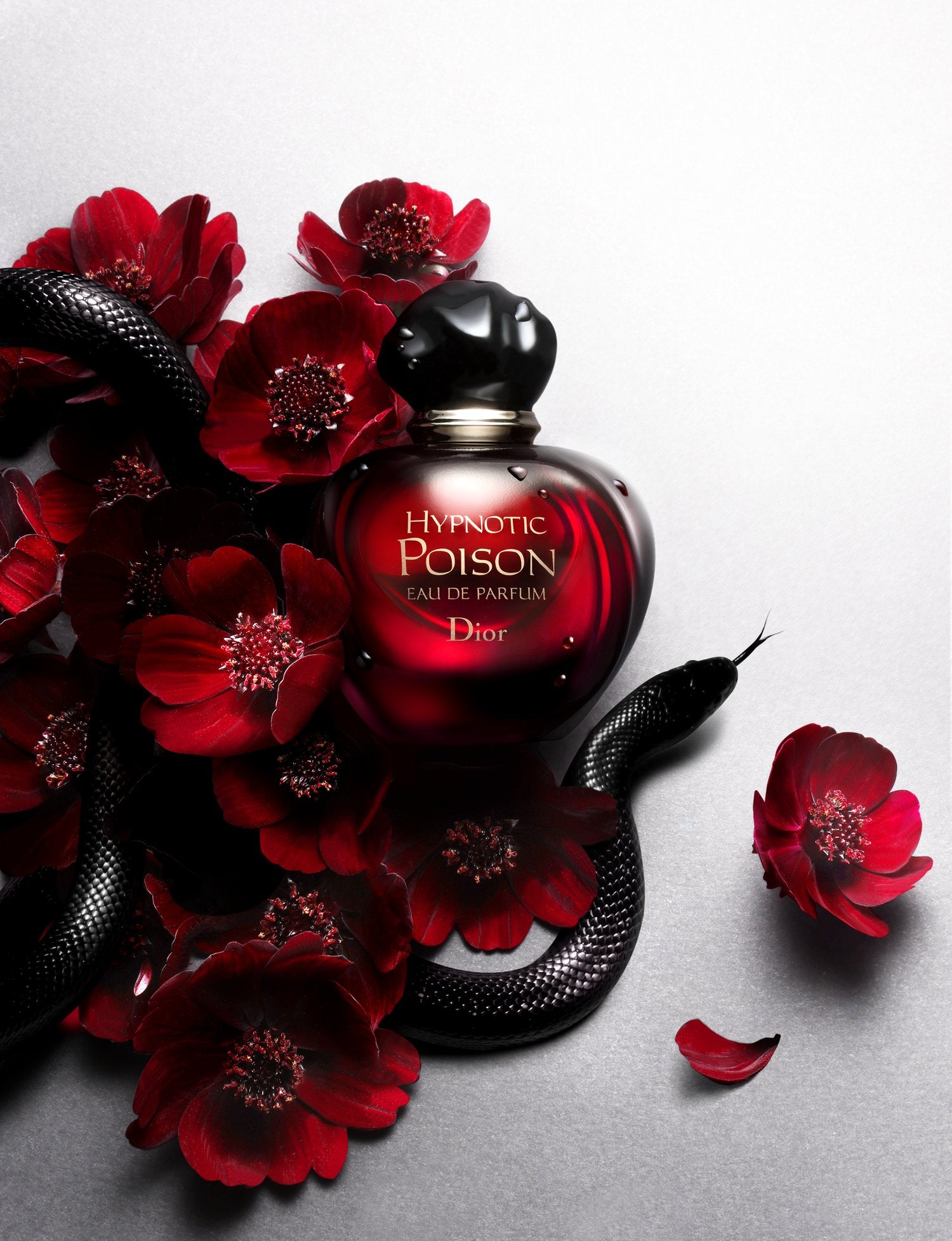 The bottle of Hypnotic Poison—fragrance of mystery—is an absolute icon. A sultry incarnation of the forbidden fruit. Tempting red apple. Its glass appears possessed with molten lava.