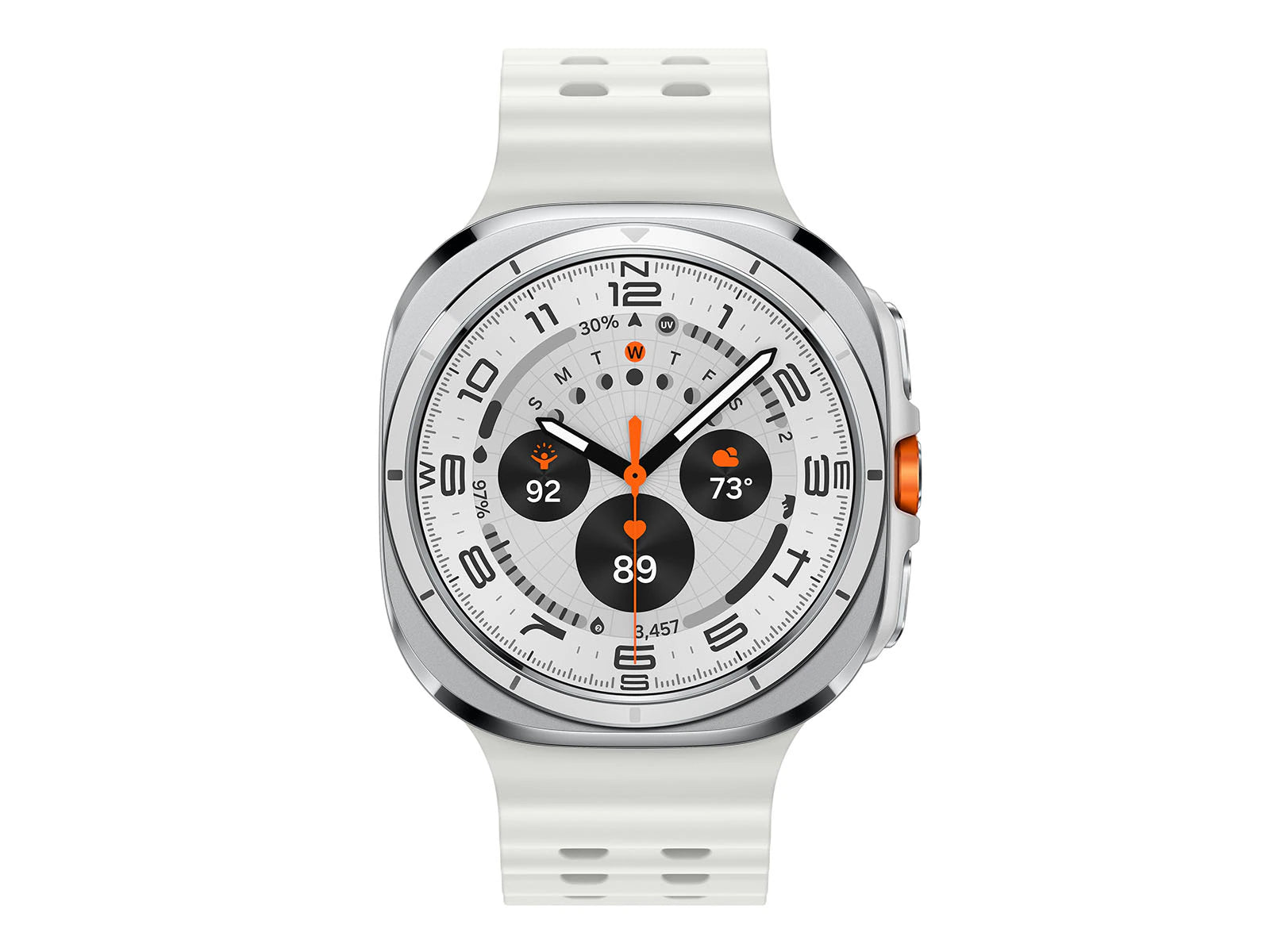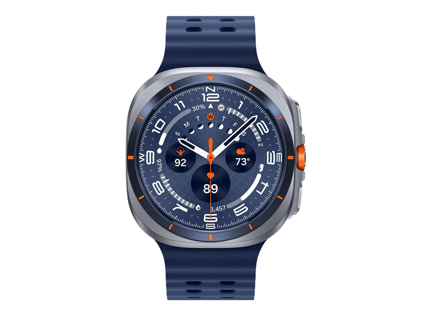 Available in Titanium Blue, Titanium Silver, Titanium Gray, and Titanium White, each finish is paired with performance bands that match your lifestyle. The 1.5-inch Super AMOLED display shines at 3000 nits, ensuring visibility in any condition.